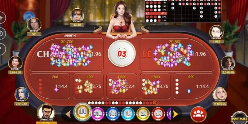 - Đặt cược: Người chơi bắt đầu bằng việc chọn cửa cược trên bàn, với các lựa chọn phổ biến như: Chẵn (tổng mặt đỏ và trắng là 0, 2, hoặc 4), Lẻ (tổng là 1 hoặc 3), hoặc Cửa đặc biệt (dự đoán chính xác số lượng mặt đỏ hoặc trắng, như toàn đỏ hoặc toàn trắng).